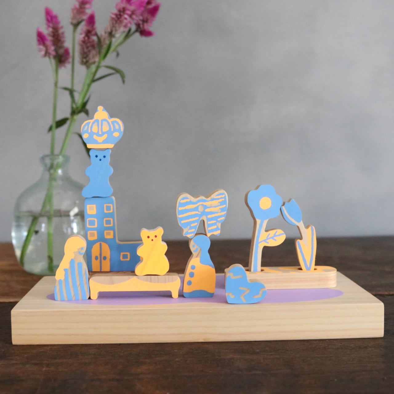 おもちゃ箱の中からお気に入りのキャラクターや人形たちが飛び出してきたようなイメージでおままごとなど遊びや、こぐまと女の子との物語を広げてもらえると嬉しいです。