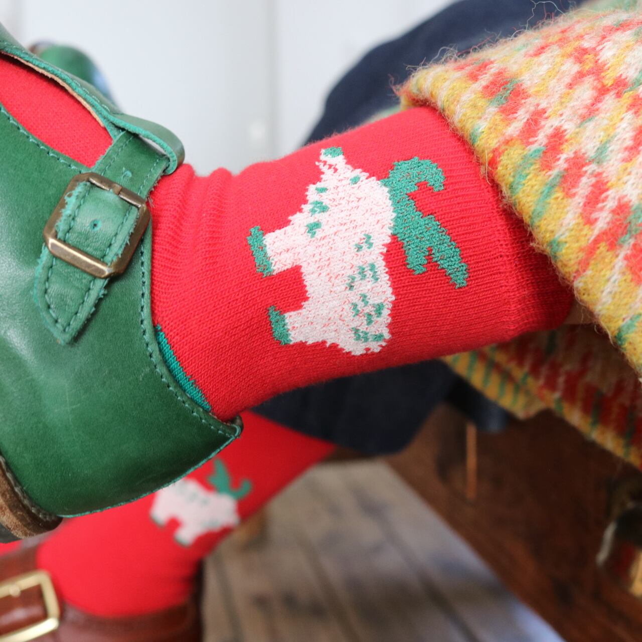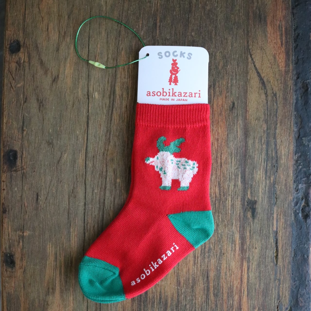 12月の遊び飾り。に登場するトナカイの柄がワンポイント入った靴下です。